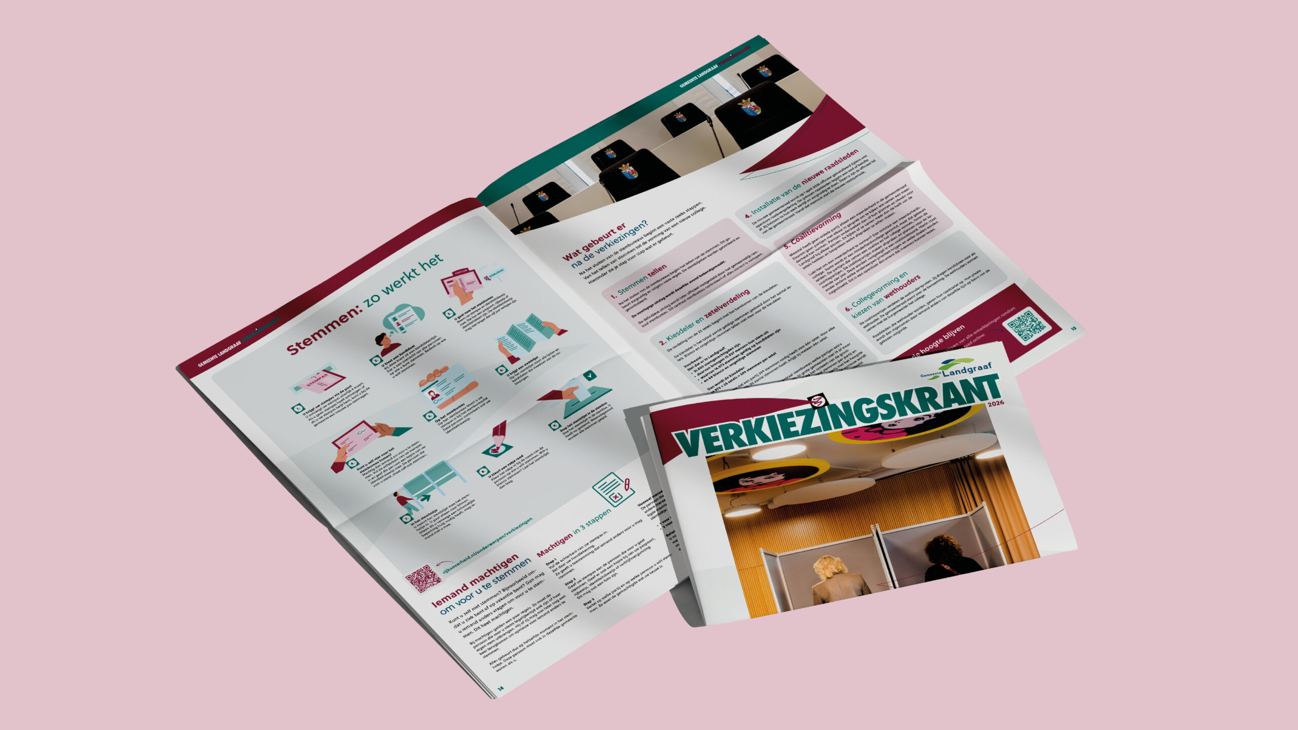 Na het ontwerpproces hebben wij ook de productie van de krant begeleid, zodat het eindresultaat precies aansloot bij de wensen van de gemeente. Inmiddels is de verkiezingskrant verspreid onder de inwoners van Landgraaf en op veel deurmatten in de gemeente te vinden.